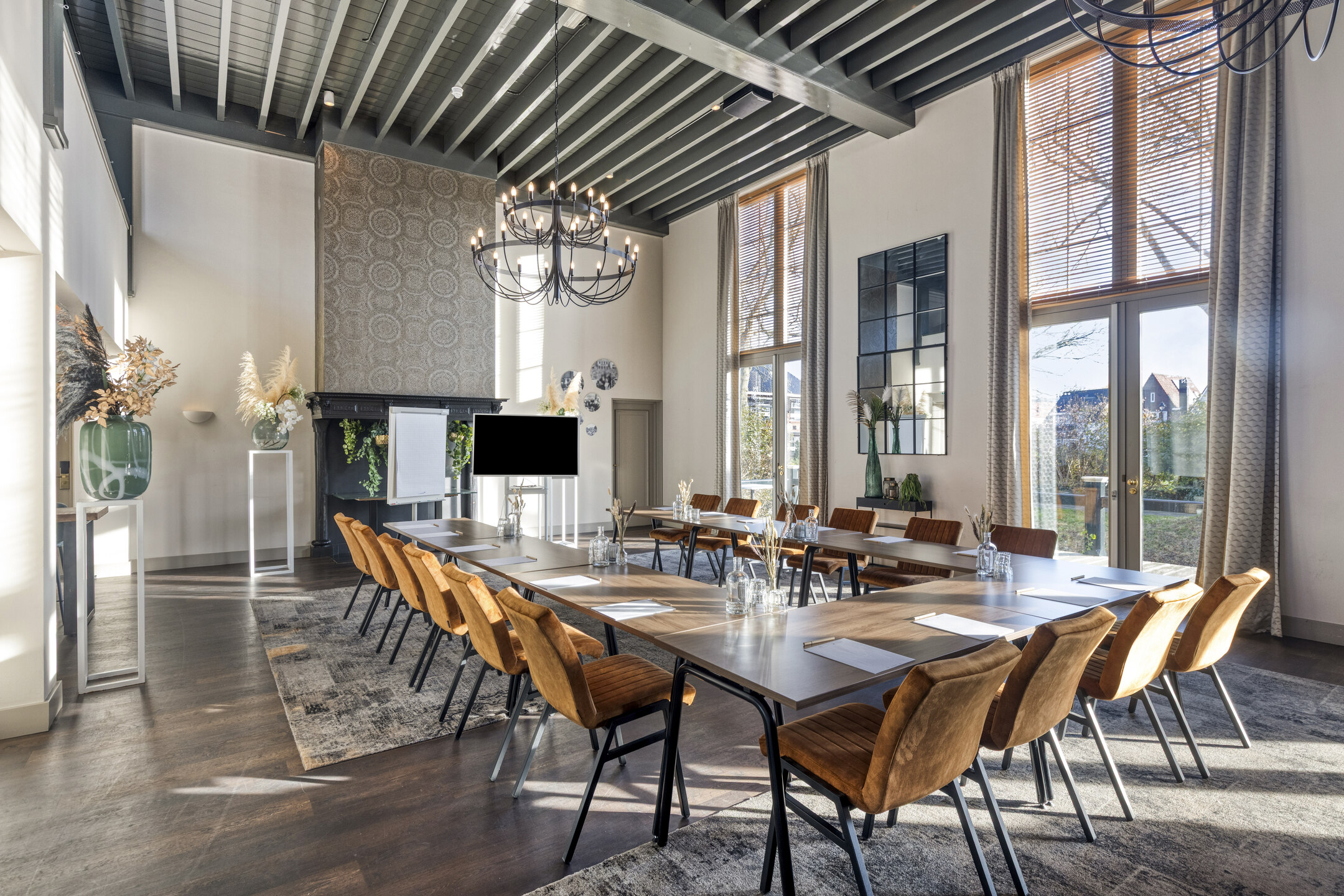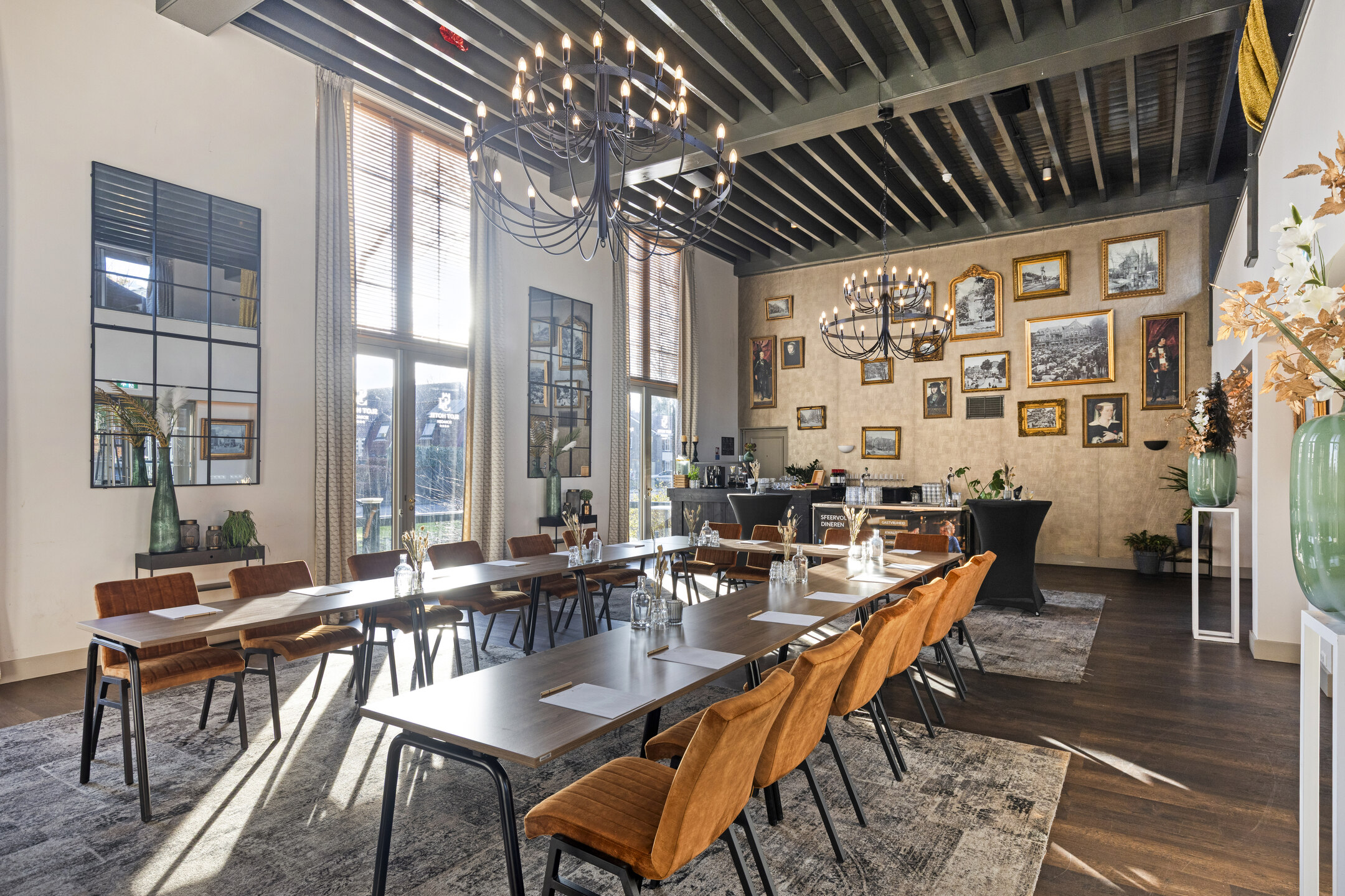 Ontdek een inspirerende vergaderlocatie met meerdere sfeervolle ruimtes, van een lichte serre met binnentuin tot een karakteristieke zaal in het Kasteel van Slot Hotel.